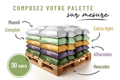 Constituez votre palette de 30 sacs parmi toute notre gamme d'aliments pour chevaux (sauf Horse Dinner et gamme Hartog)