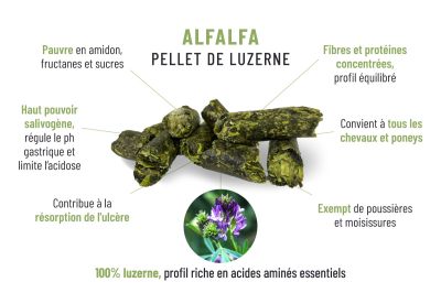 15.68€ TTC/sac LIVRÉ, prix indicatif pour 50 sacs. - Granulés de luzerne cheval ALFALFA