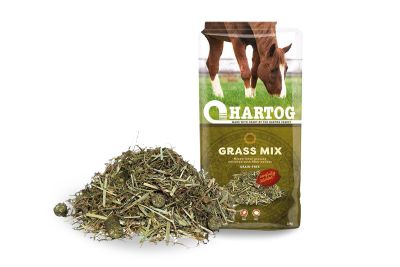 HARTOG Grass Mix est un mélange sans céréales à base de foin tendre et de granulés d'herbe pour une mastication et salivation augmentée, destiné à tous les chevaux.